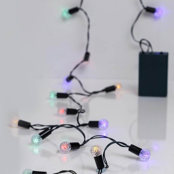 20 διακοσμητικές Vintage μπαλίτσες με λαμπάκια LED σε σειρά μπαταρίας, 1,90 m, πράσινο καλώδιο, σταθερή, χρονοδιακόπτης, IP20, Πολύχρωμο (Χρωματιστό / Multi)
