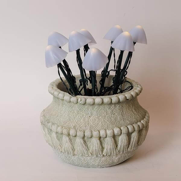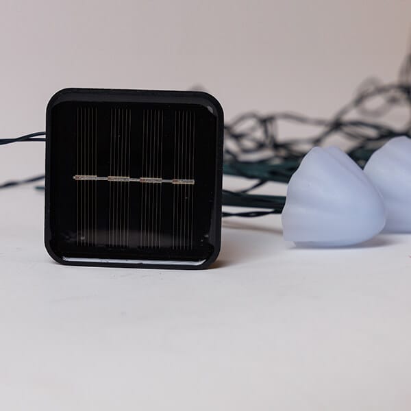 4,5 m σειρά χριστουγεννιάτικα πολύχρωμα λαμπάκια Θερμό Λευκό / Warm white LED με λευκά πλαστικά μανιτάρια 20(h) cm που λειτουργούν με ηλιακό συλλέκτη – solar panel με αισθητήρα φωτός. Λειτουργούν με ηλιακή ενέργεια, φορτίζοντας κατά τη διάρκεια της ημέρας και προσφέροντας αυτόνομο φωτισμό τη νύχτα, ιδανικά για τον στολισμό εσωτερικών και εξωτερικών χώρων χωρίς ανάγκη σύνδεσης ρεύματος. Οι μπάλες είναι σε αποχρώσεις του κόκκινου, γκρι και λευκού.