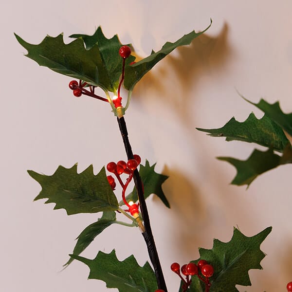 Φωτιζόμενα κλαδιά πράσινα με κόκκινα μούρα, μπαταρίας, 75 cm, 16 LED, χρονοδιακόπτης, Θερμό Λευκό (Warm white)