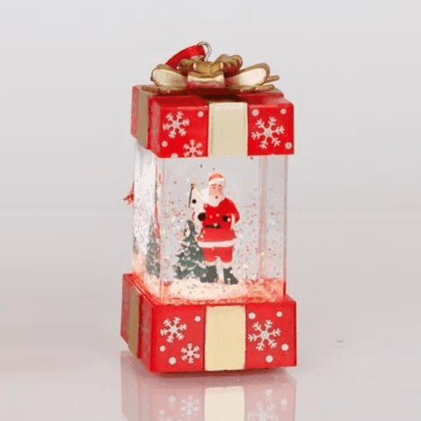 Φωτιζόμενο κουτί δώρου με Άγιο Βασίλη και νερό στο εσωτερικό, μπαταρίας, LED, 5.3×5.3×12(h) cm.