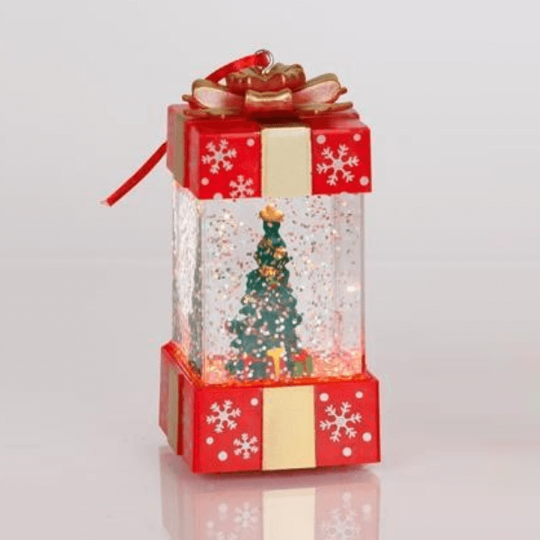 Φωτιζόμενο κουτί δώρου με Χριστουγεννιάτικο Δέντρο και νερό στο εσωτερικό, μπαταρίας, LED, 5.3×5.3×12(h) cm.