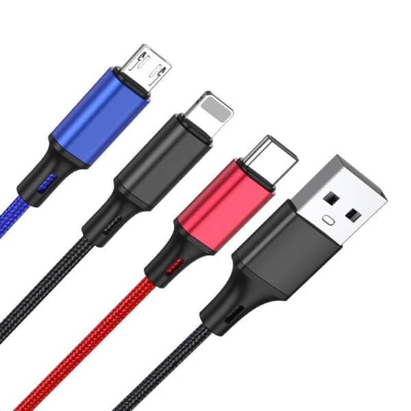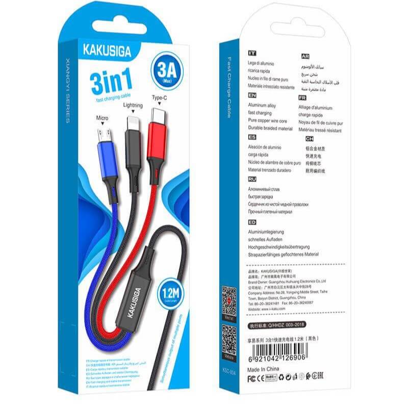 Kakusiga Καλώδιο USB-Α – 3σε1 (USB-C, Lightning, micro USB), 1m, Μαύρο
