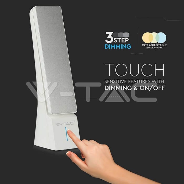 V-TAC Λευκό Ασημί Φωτιστικό γραφείου αφής Επαναφορτιζόμενο, LED, 4W, CCT (3000Κ – 4000Κ – 6000Κ)